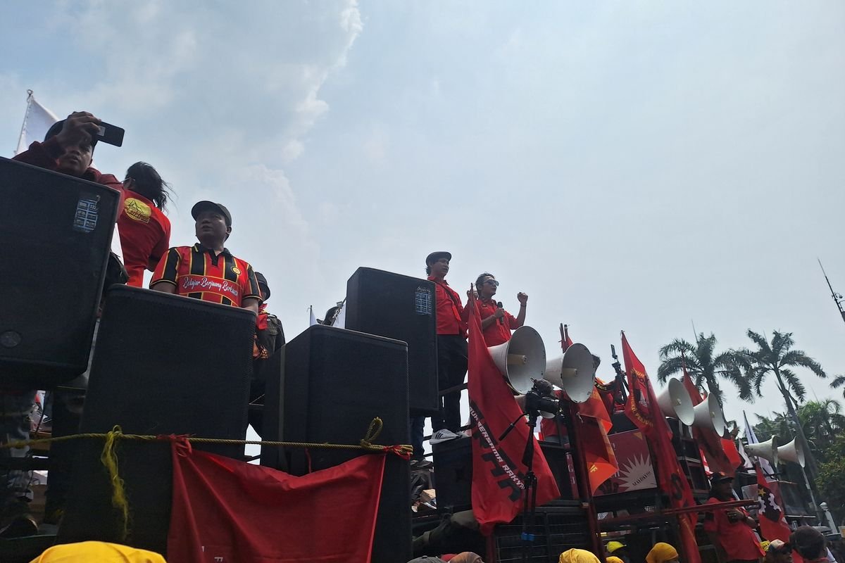 Aksi yang dimulai sejak pagi hari di Bundaran HI ini awalnya berlangsung damai. Para buruh membawa spanduk dan poster yang berisi tuntutan mereka, serta menyuarakan aspirasi melalui orasi. Namun, sekitar pukul 11 siang, aparat keamanan meminta massa untuk membubarkan diri dari lokasi tersebut. Hal ini memicu perpecahan di antara para demonstran, yang kemudian memutuskan untuk melanjutkan aksi mereka dengan bergerak menuju Gedung DPR.