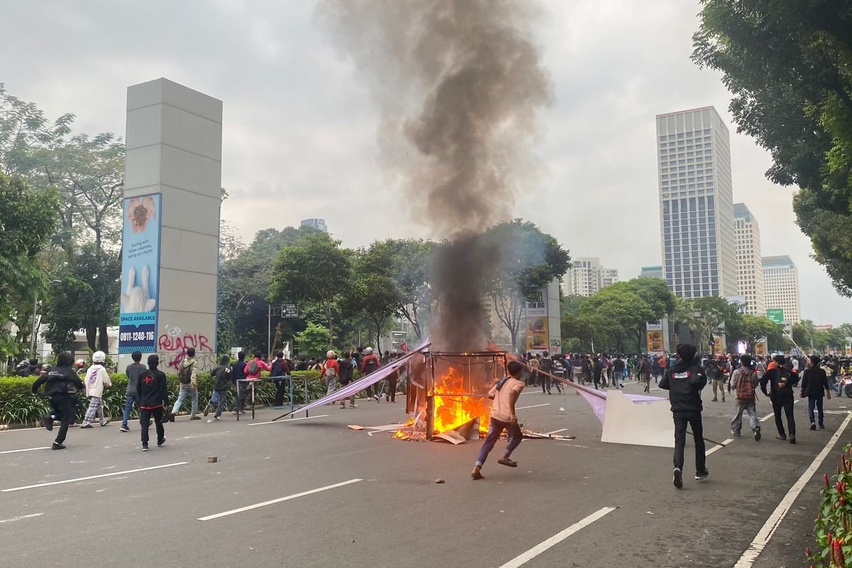 Ketegangan meningkat ketika massa mulai melemparkan batu dan benda keras lainnya ke arah aparat. Polisi merespons dengan menembakkan gas air mata untuk membubarkan kerumunan. Bentrokan pun meluas ke beberapa titik di sekitar pusat kota, termasuk Jalan Medan Merdeka dan Jalan Thamrin.