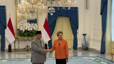 Presiden Republik Indonesia, Prabowo Subianto, menyambut kedatangan mantan Presiden Brasil, Dilma Rousseff, dalam kunjungan kenegaraan…