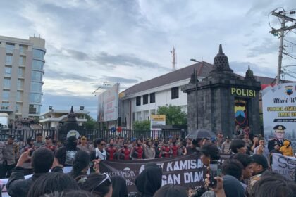 Massa Aksi Kamisan kembali menggelar protes di depan Mapolda Jawa Tengah, Semarang, pada Kamis (12/12),…
