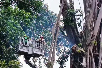 Pada Kamis, 6 November 2025, sebuah pohon Karet Kebo (Ficus Benjamina) yang telah berdiri selama…