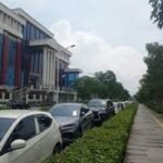 Sejumlah kendaraan pribadi terlihat terparkir di bahu Jalan Danau Sunter Barat, tepat di depan Pengadilan…